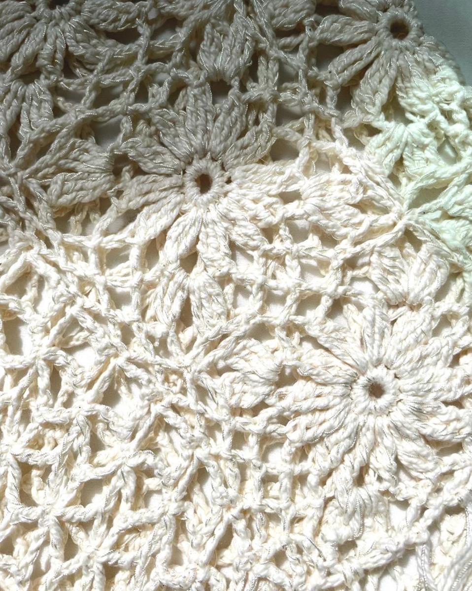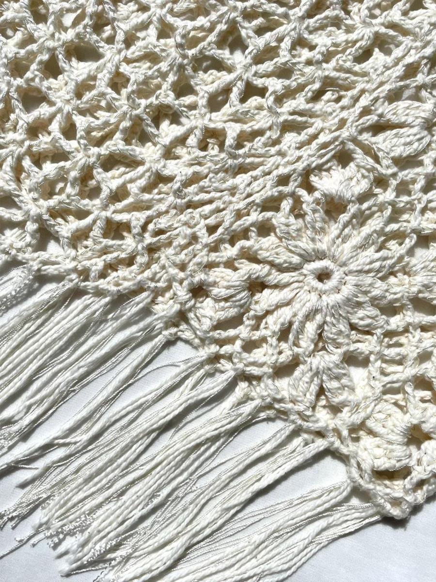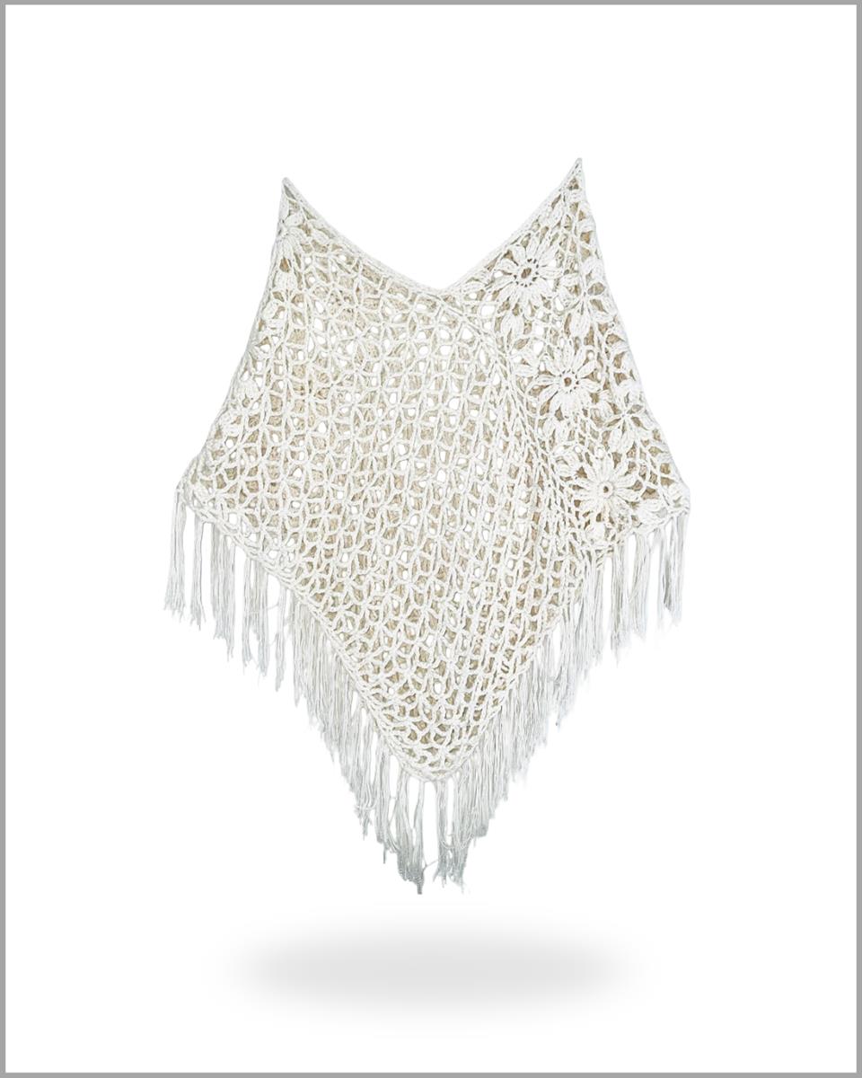 Peça confeccionada à mão em crochê, com duas linhas trabalhadas juntas, resultando em uma textura delicada e um acabamento sofisticado.