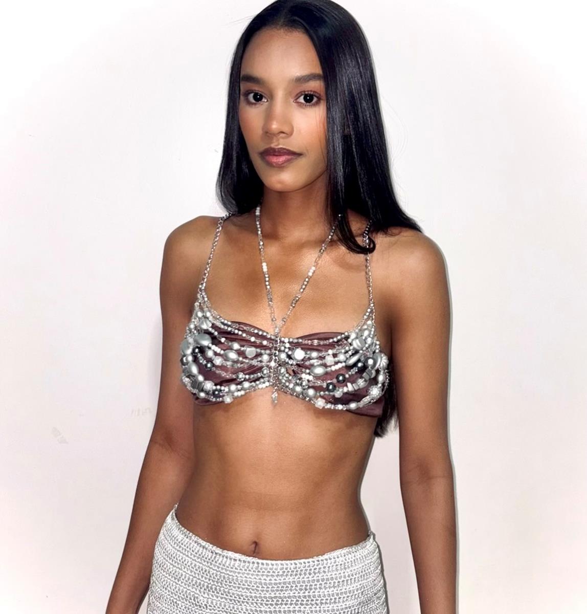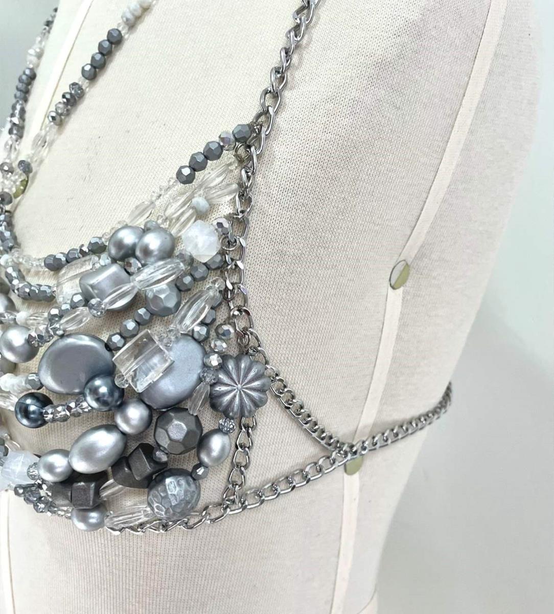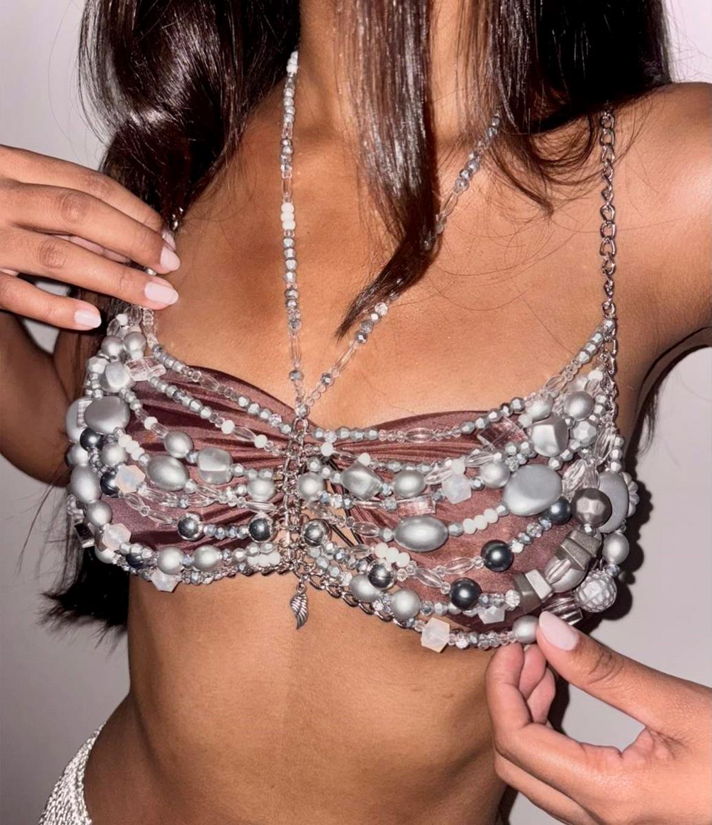 Top Star é uma estrela, movimento e brilho. Confeccionado manualmente com pedrarias selecionadas uma a uma, criando uma rica diversidade de texturas e reflexos.